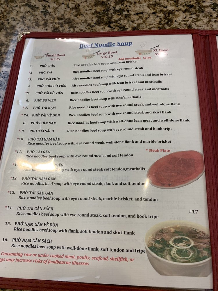 Rice noodles beef soup with eye round steak, soft tendon, and book tripe.